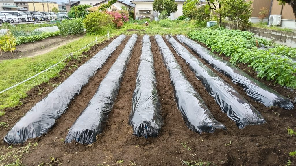 共同農園のサツマイモ植え付け準備OK
